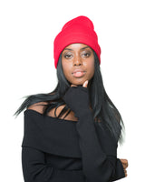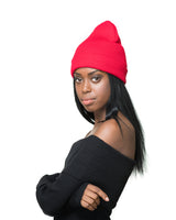 Our knit beanies and wool berets are standard size and stretch to fit comfortably on most heads.