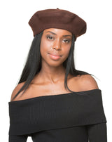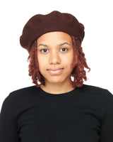 Our knit beanies and wool berets are standard size and stretch to fit comfortably on most heads.